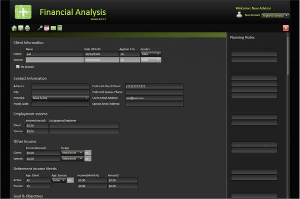 该系统只需要从客户那里获取关键信息,然后以客户的利益直观地计算,帮助用户给最终客户提供一个财务分析,包括总账,图表和pdf格式的报表。